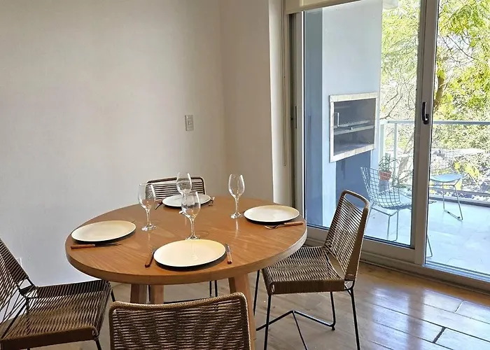 2 Amb En Palermo Con Piscina Apartment comprises a balcony and a dining place equipped with air conditioning, as well as a flat-screen TV with satellite channels. The property offers guests the convenient feature of towels in the bathroom.
